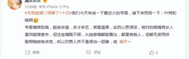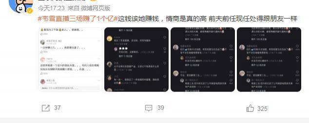 最近,网红韦雪因为三场直播赚了 1 个亿上了热搜,但离奇的是下边网友的评论基本都是: