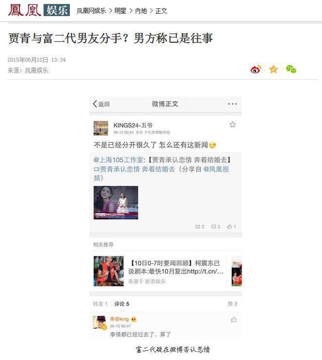 2015 年,他身边的女友是女明星贾青,两人之前曾被拍到亲密同框,女方甚至还公开透露两人 " 好事将近 ",却不料被男方出面否认,迅速打脸。