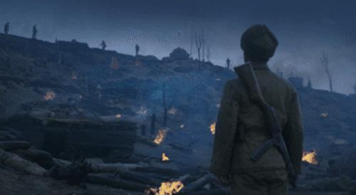 爆炸的轰鸣声、弥漫的硝烟、士兵们血污的面庞,每一个细节都把观众带回到了那个战火纷飞的年代。