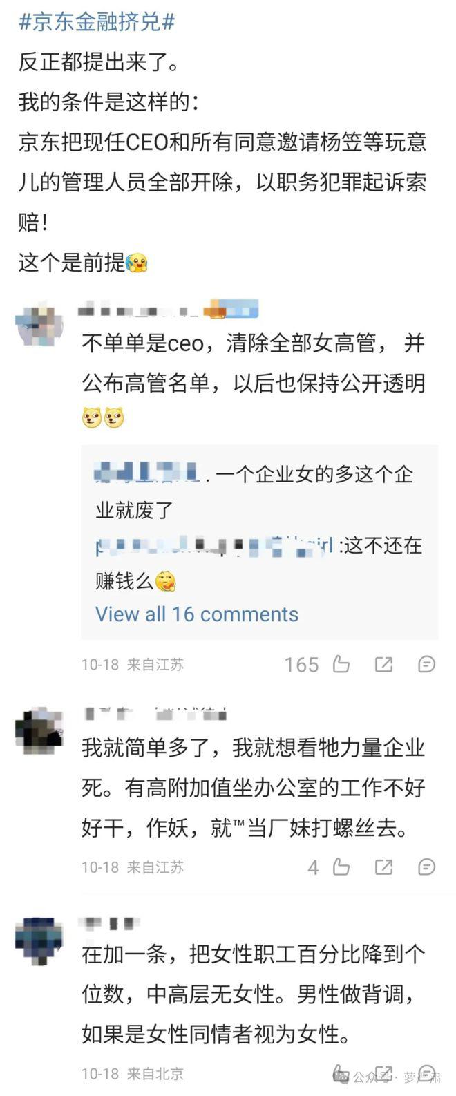 (部分)男网友立刻表示要抵制京东,退京东 plus 会员、到京东开发票、从京东金融里取钱等等。