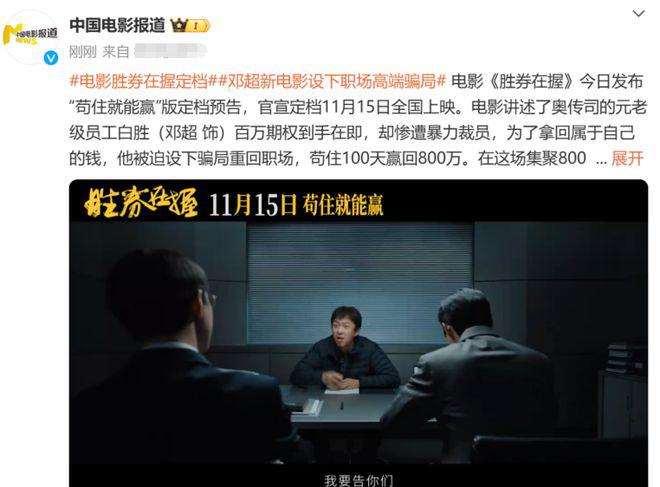 除此之外,眼下《胜券在握》也传来好消息,该片定档于 11 月 15 日全国上映,影帝邓超又 " 杀 " 回来了!
