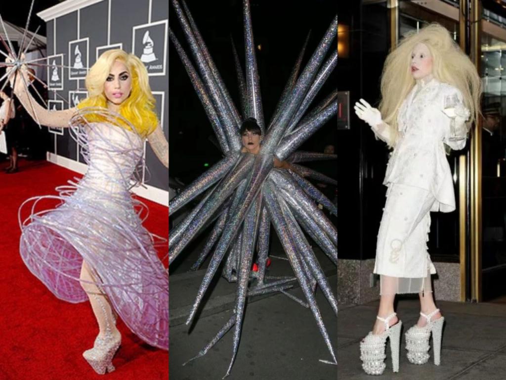 海胆装、人造卫星装、瓷娃娃装等,都是 Lady Gaga 曾经的奇装异服。其中,最大胆,也最轰动的,莫过于在 2010 年 VMA 颁奖典礼上穿的 " 生牛肉装 "。