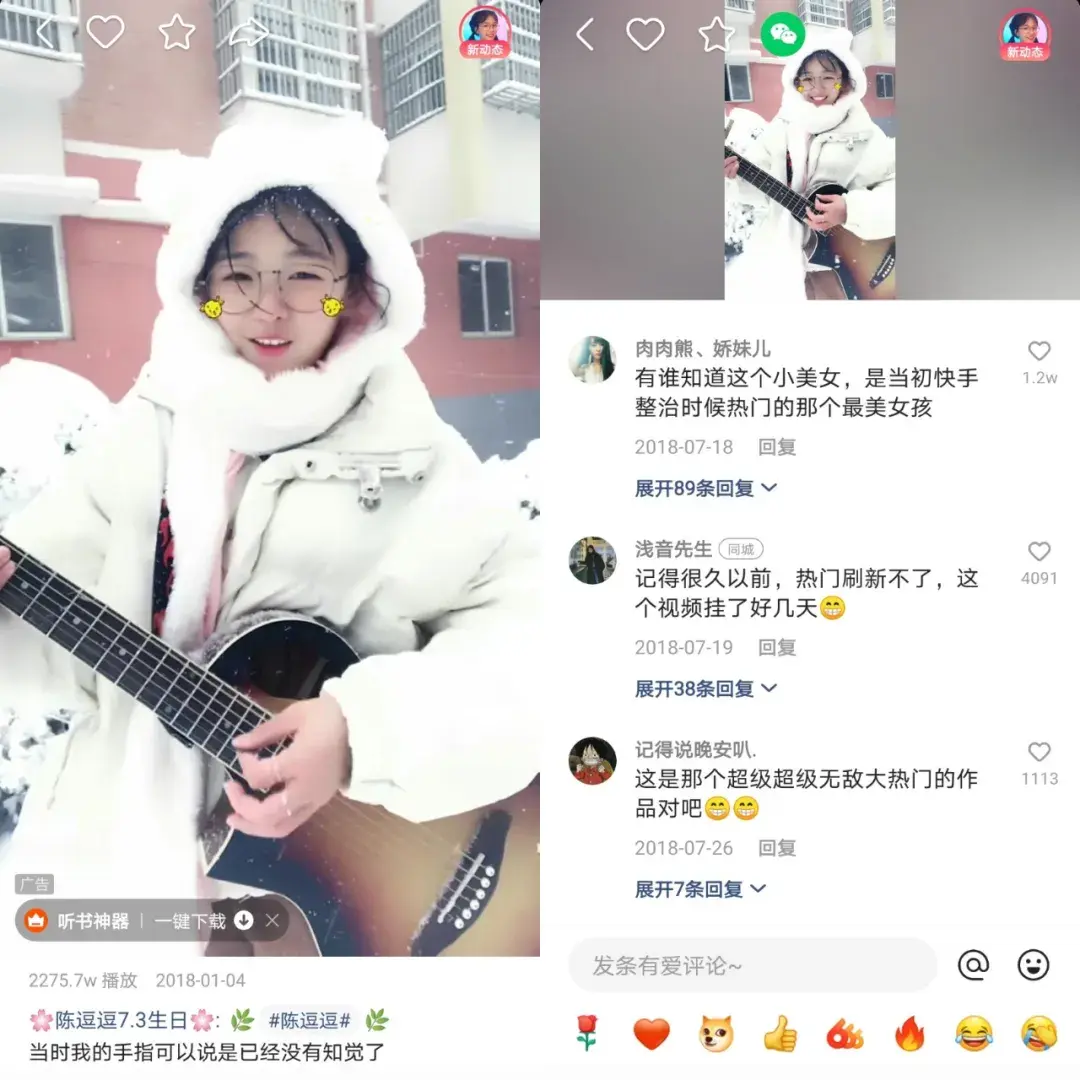 “第一次在快手热门上刷到她(陈逗逗)是2018年,当时快手整顿,热门界面停留在一部分视频上,她的视频就是其中之一。”