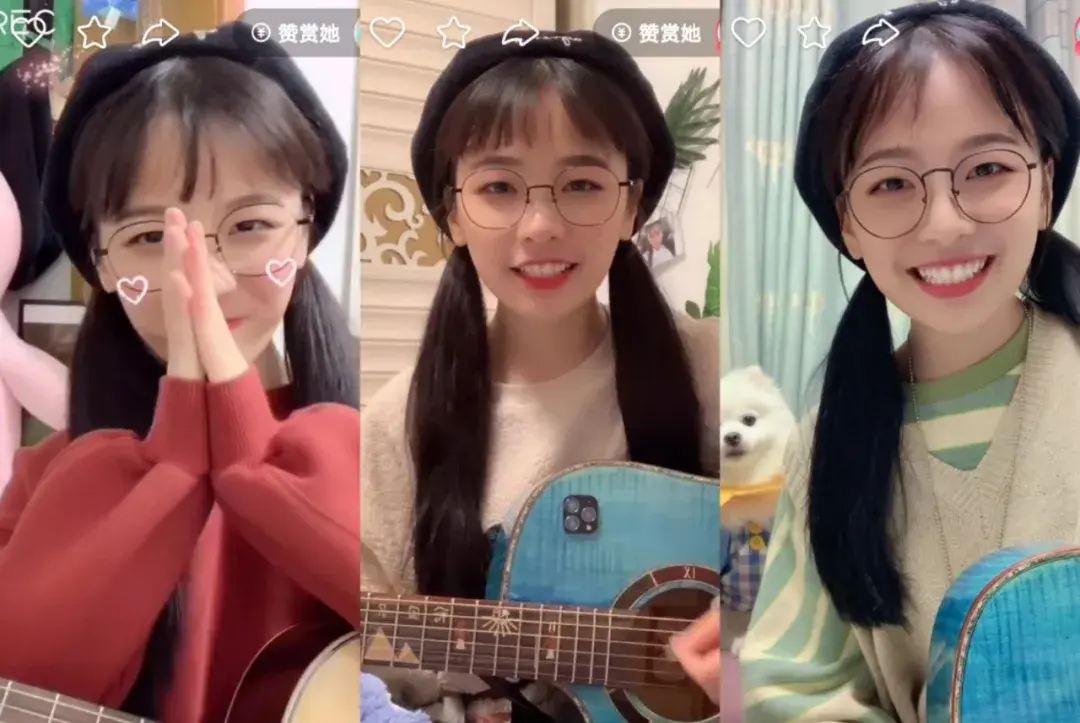 视频里的她经常扎着双马尾,戴着黑框眼镜和贝雷帽,拿着一把吉他自弹自唱,会用微笑掩饰忘词的尴尬,唱到兴奋会不自觉地抖眉毛,因此被粉丝称为“快手第一眉毛杀”。