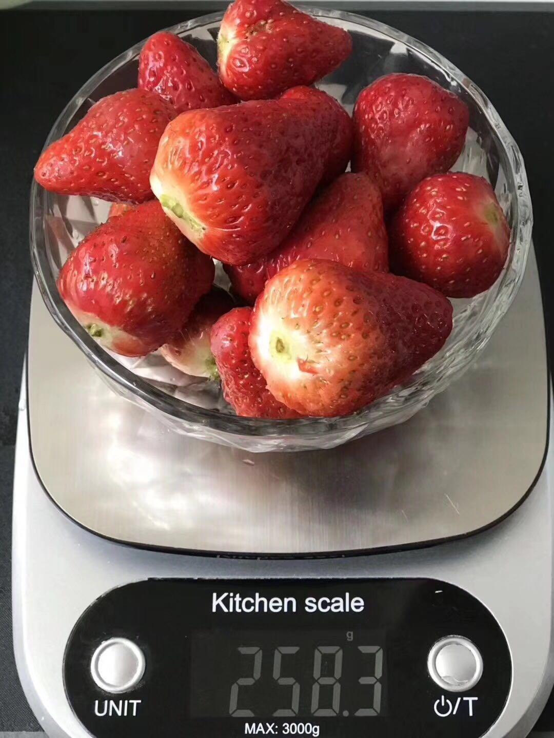 首先,将草莓洗净,称好。洗草莓可是有小tips的哦!