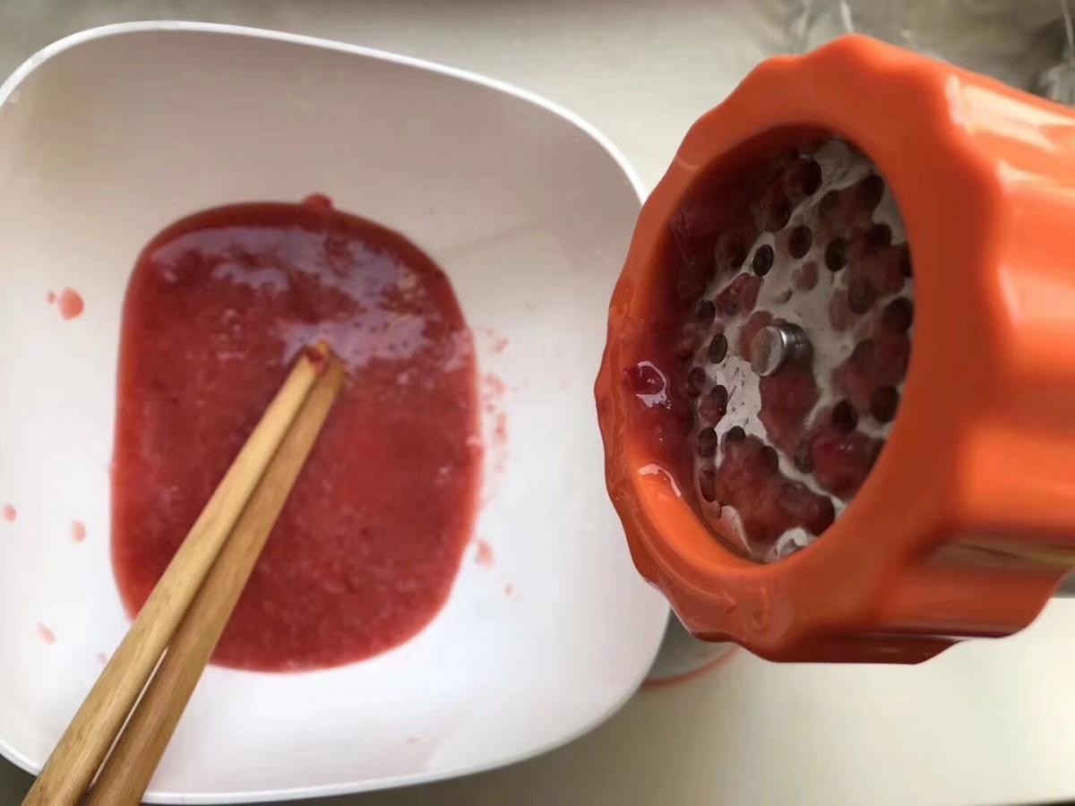 用料理机将草莓摇成泥。