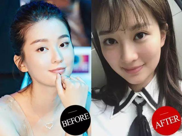 宋茜也是发际线高的女明星之一,没有刘海的话能清晰看到高高的发际线,剪了刘海后稍微能起到点修饰作用。
