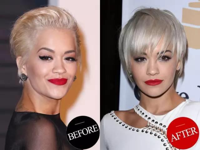 Rita Ora的单挑眉也是超级明显,剪了刘海后正好把上挑的眉毛遮住了,五官看起来也就柔和多了。
