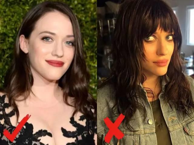 Kat Dennings刘海造型巨丑,不是因为她没有刘海的造型深入人心,而是因为她脑门较窄,剪了刘海之后脑袋看起来更尖,脸更加细长,完全不是性感泼辣的Max啦!