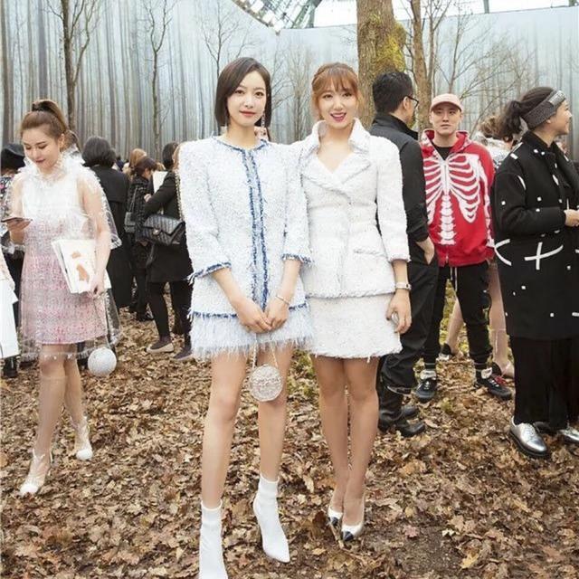 就连一直被diss颜值不过关的关晓彤,穿上不不合适的礼服与韩国被誉为“腿精”的宣美同框时,也能轻松稳赢。