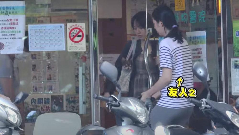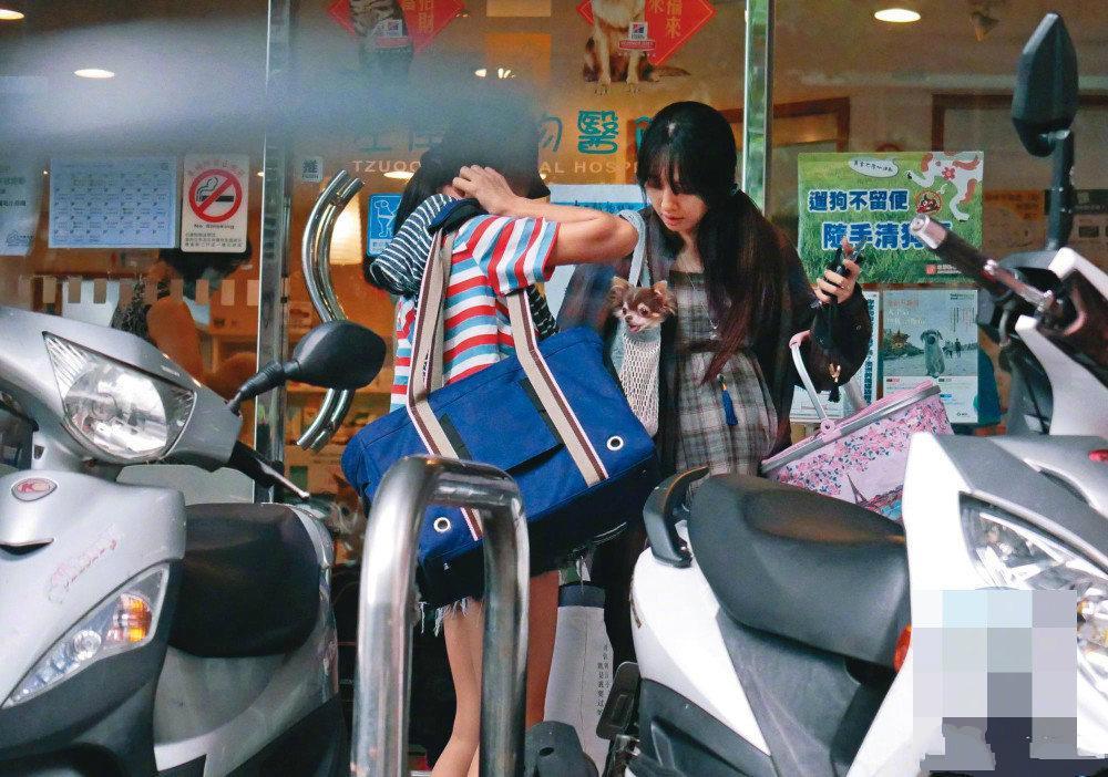 怀孕的郭碧婷背着白色的网格包,这款时尚的包包内装着狗狗,孕味十足的郭碧婷爱心爆棚。