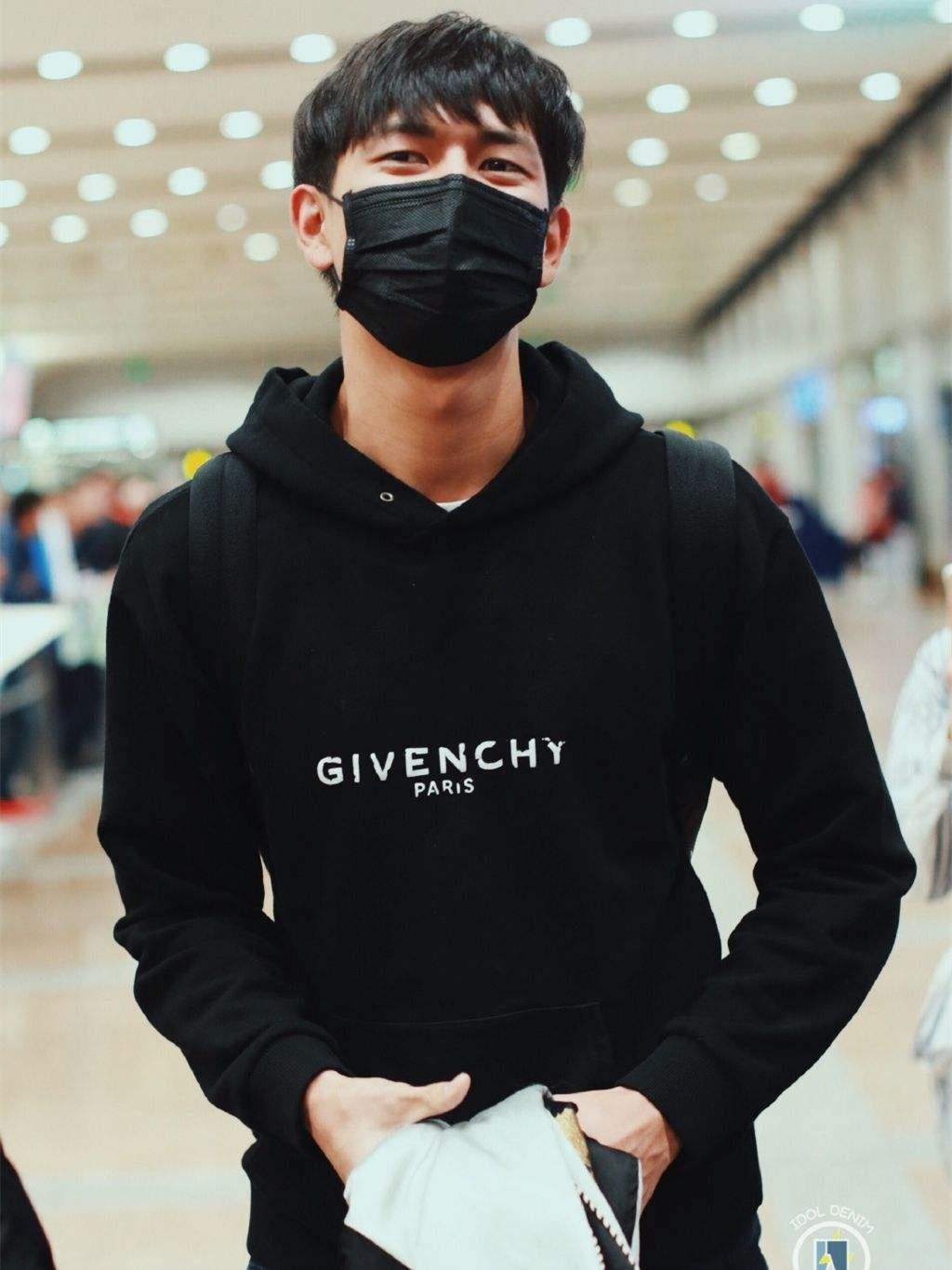 比如在机场的私服照,穿着黑色长袖卫衣的他,微微笑着回头看,眉毛轻轻的皱起,整个人都很干净青春,他的笑充满治愈。