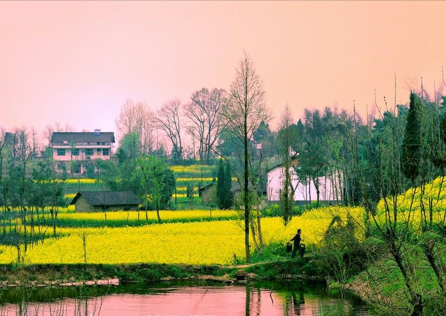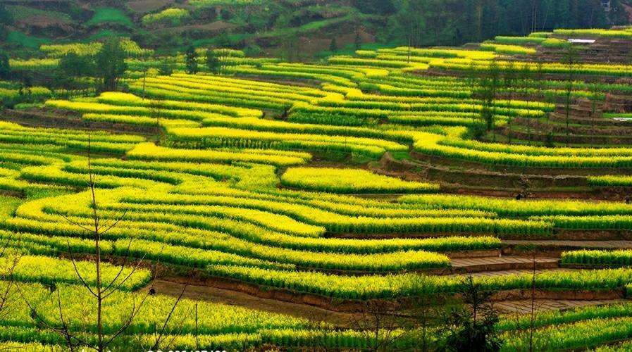 春天的汉山妩媚多情:山坳中,梯田里,黄灿灿的油菜花与山间青黑的矮松、白亮亮的冬水田一起,组合成一幅明媚艳丽的水粉画。夏天的汉山壮美辽阔:山脚下绿稻千重,山腰间青松翠柏、绿枝拂面,山顶上白云悠悠,蓝天高远。秋天的