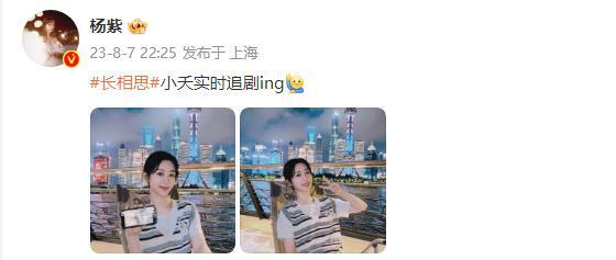 新浪娱乐讯 8 月 7 日,杨紫晒出自己的外滩随拍,自曝在实时追剧《长相思》,惬意悠闲。