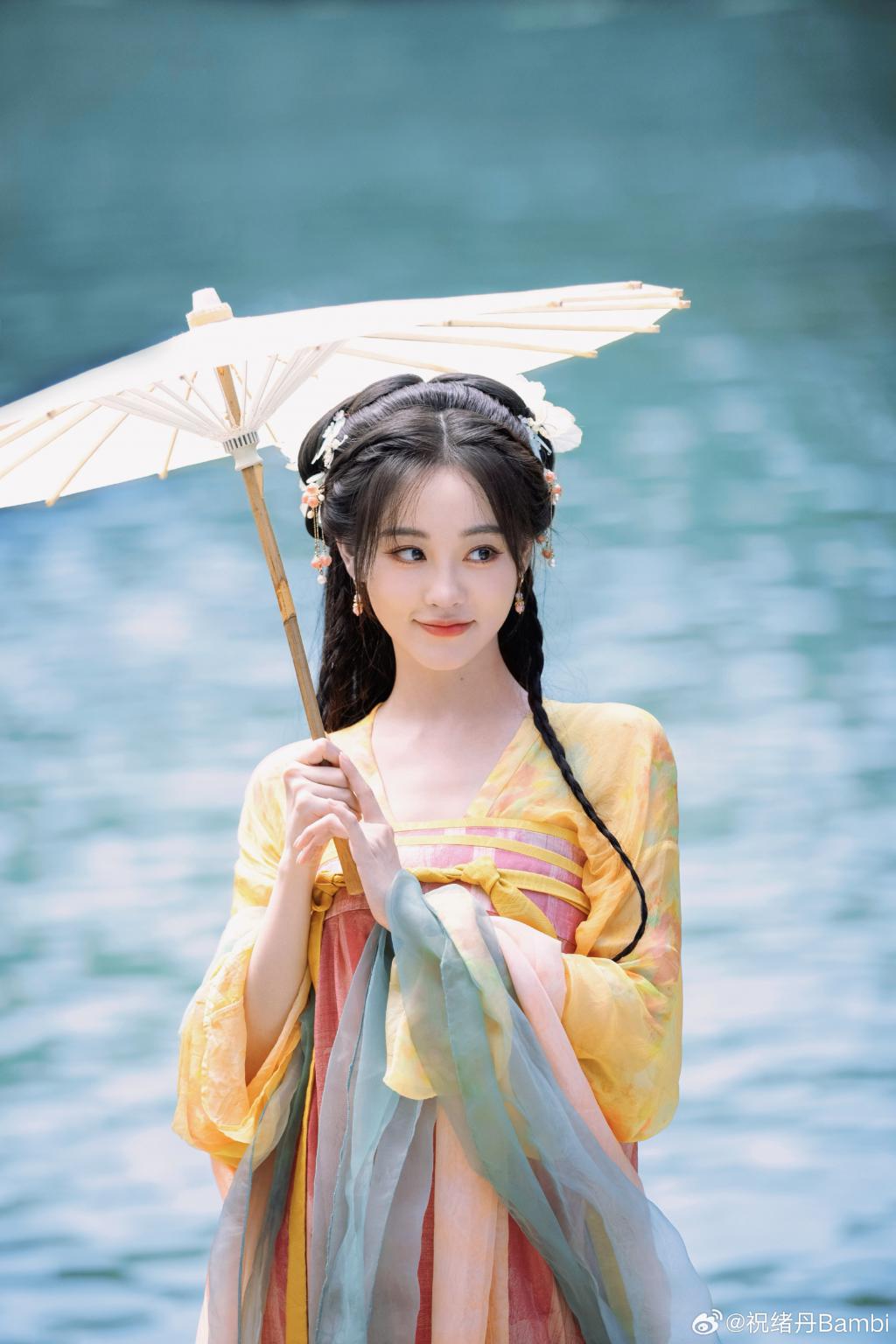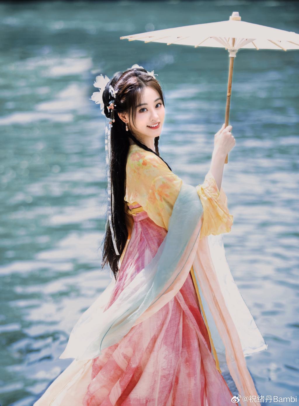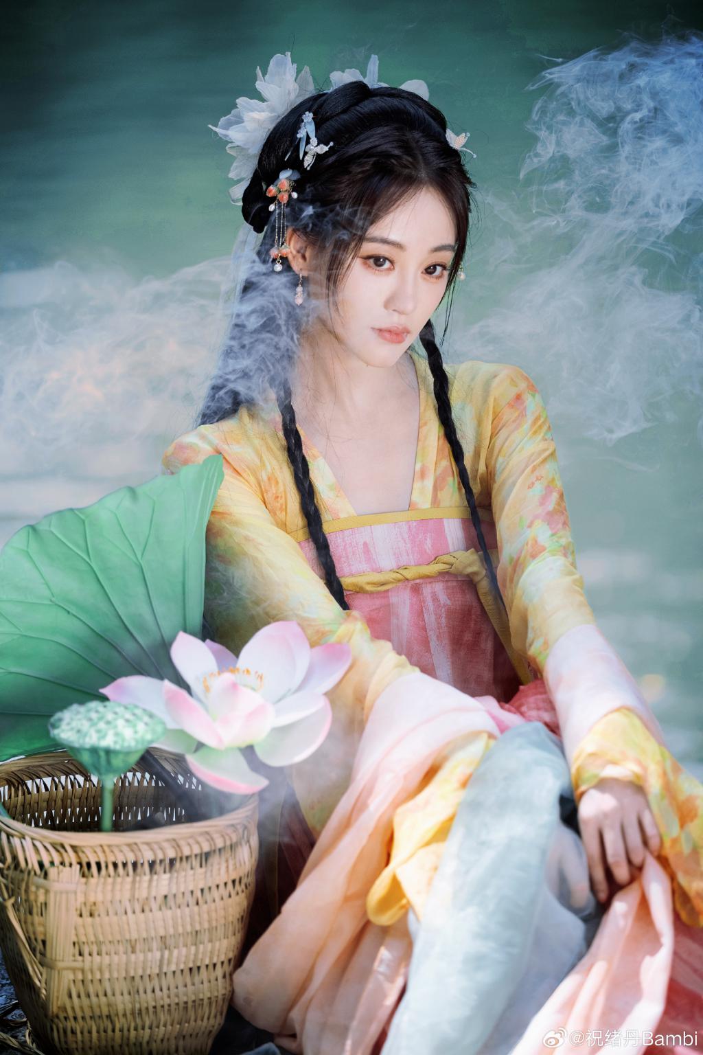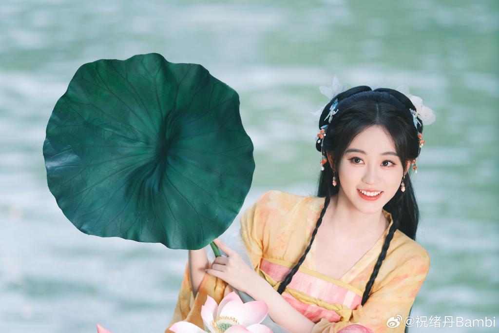 祝绪丹的一组美照曝光,她身穿彩色古装造型娇艳动人,手拿大荷叶表情鬼马灵动,在水边笑容明媚。
