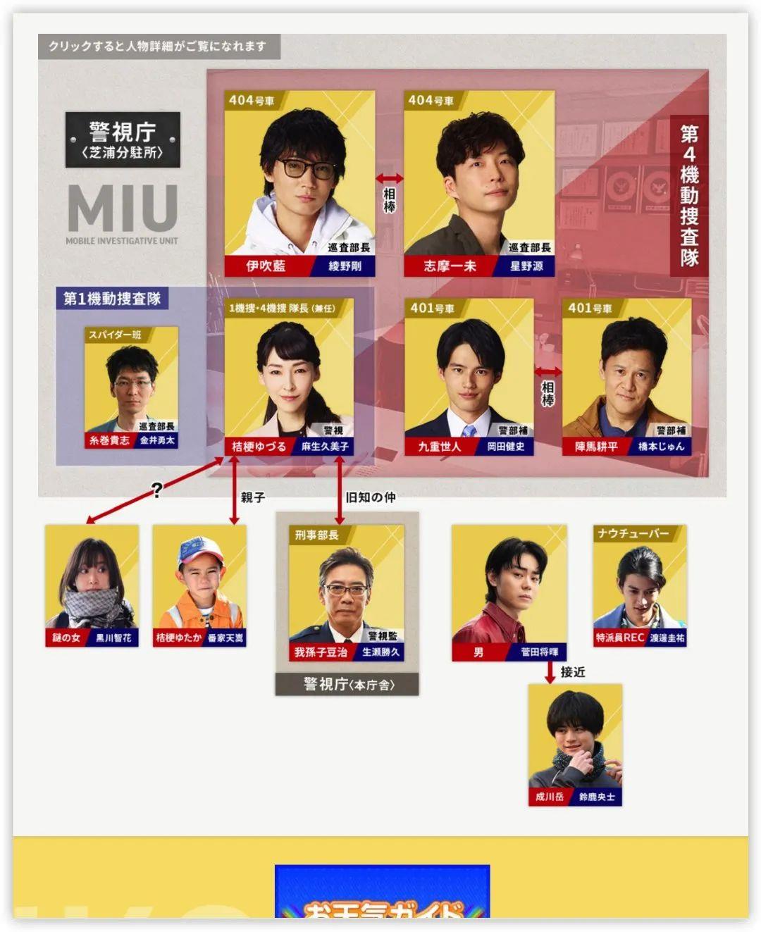 除了两位主演,MIU中还有由冈田健史扮演的“官二代”九重世人,则因为自己的局长父亲威势过于强大没有部门敢接收,只能被分到这个大家都不怎么在乎上下级关系的地方。