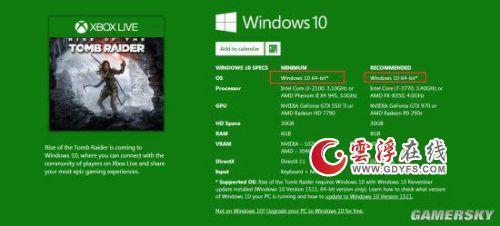 《古墓丽影:崛起》即将在1月29日发售,还有三天的时间,玩家就能和劳拉在电脑上一起展开冒险,steam页面上目前还只有《古墓丽影:崛起》的最低PC配置要求,英伟达于早些时候曝光了游戏N卡推荐配置,终于在XBOX网站上,《古墓丽影:崛起》的PC推荐配置也得到了曝光,除了推荐配置之外,更值得注意的是最低配置的系统居然从win7变成了win10!这又是怎么一回事呢?