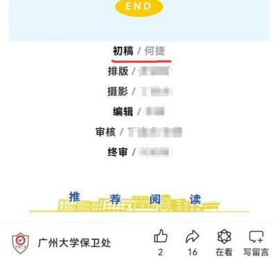 这一甜蜜日常并没有持续太久,紧关于何捷转业的消息便不胫而走。有网友爆料称何捷疑似已被调任至广州大学保卫处,并附上了相关证据,包括广州大学官方公众号的文章截图。文章中提到何捷的名字和照片,显示他曾参与组织前往广东工业大学、华南农业大学的调研活动,部分更是标明初稿作者正是何捷。