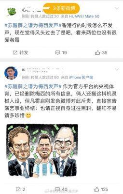 除了对梅西的支持,苏醒和薛之谦的发声也显露出他们对霍启刚的反击意识。扯起了这段昔日恩怨,让整个事件朝着新的方向发酵。有人认为,霍启刚对梅西的指责或许是出于对偶像所代表的足球文化的不理解,而不是对梅西真正所做出的贡献。