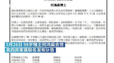 赌王何鸿燊原配去世讣闻中未提其他三位太太