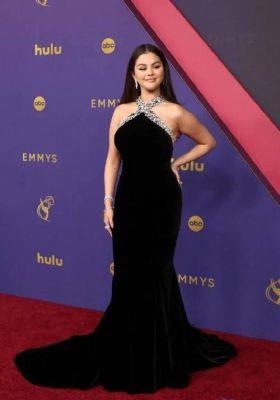 作为颁奖嘉宾的赛琳娜·戈麦斯(Selena Gomez),则以一条黑丝绒的鱼尾裙惊艳全场。裙子的设计让她的身材曲线得到了完美展现,突显了她优越的腰臀比例。即便是搭配上略显扎实的方形亮片领口,虽然硌脖子,却依然无法掩盖她的魅力。赛琳娜的选择不仅是对美的一种追求,也让她在红毯上成为了万众瞩目的焦点。