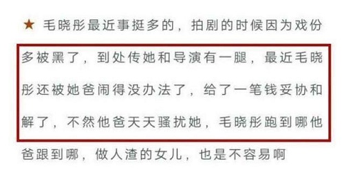 之前看《都挺好》的时候不少人被苏大强的作妖作怪气的肝疼脑仁疼,恨不得骂死这个老头子,但那到底只是电视剧所以大家看完之后也不会太过当真,但是没想到现实中比这还要可怕人渣的父亲也是存在的,并且可能大家都多少听过他的一些相关消息。很多人都想不到长相甜美乖巧的毛晓彤有着一位可怕的父亲,这次又被传出她遭到生父的监视勒索,这才消停不到半年的时间又作妖,她也太可怜了。