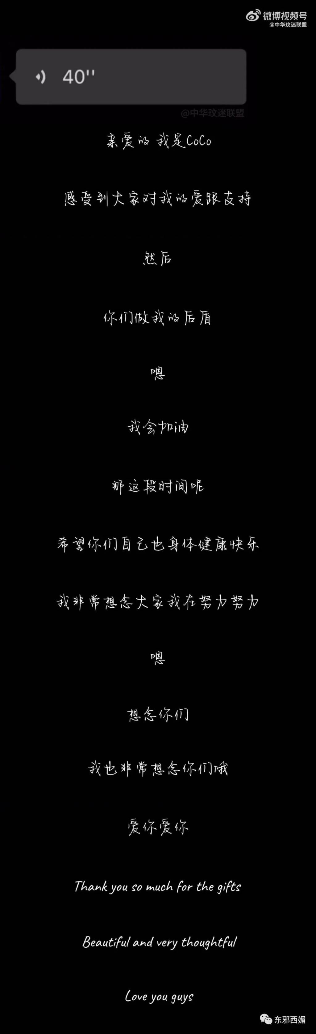 中华玟迷联盟的歌迷披露,7 月 2 号选择轻生那晚,她还用语音给粉丝留言,感谢粉丝的支持,希望粉丝朋友们身体健康。