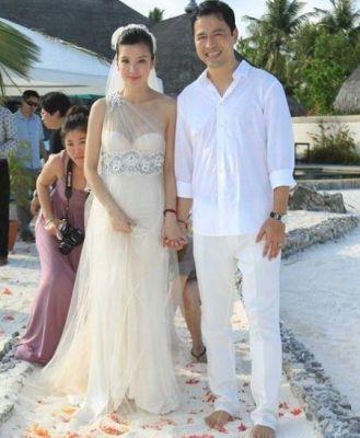 林熙蕾与丈夫合影,身材苗条如少女,但丈夫看起来却像父亲