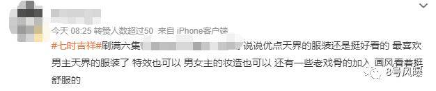 再加上此前《七时吉祥》许多路透非常出圈,从预告片中的服化道、场景布置、特效等来看,制作也不是粗制滥造,所以开播后热度一路水涨船高。