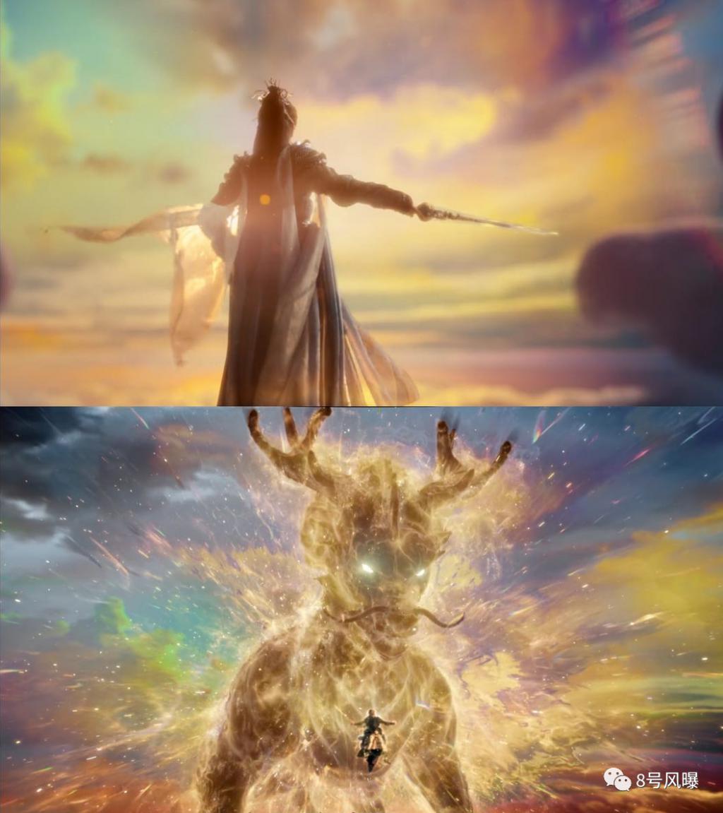 再就是第二处的致敬,网友各有猜测,有说可能是《七时吉祥》中男主初空出场时的人物背影,也可能是与摩罗族护法锦莲打架时身后出现的本体金麒麟。
