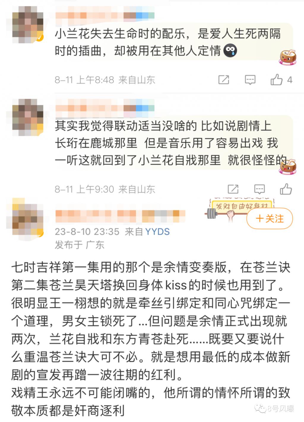 也有网友认为,这部剧从宣发期刚好赶上了《苍兰诀》开播一周年,没少打着 2.0 的幌子炒热度,但比起来差远了。