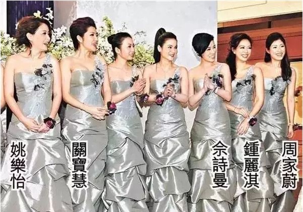 而她当时的伴娘团也非常强大,有佘诗曼、周家蔚、汤盈盈等女星,她们私下也都是非常要好的朋友。