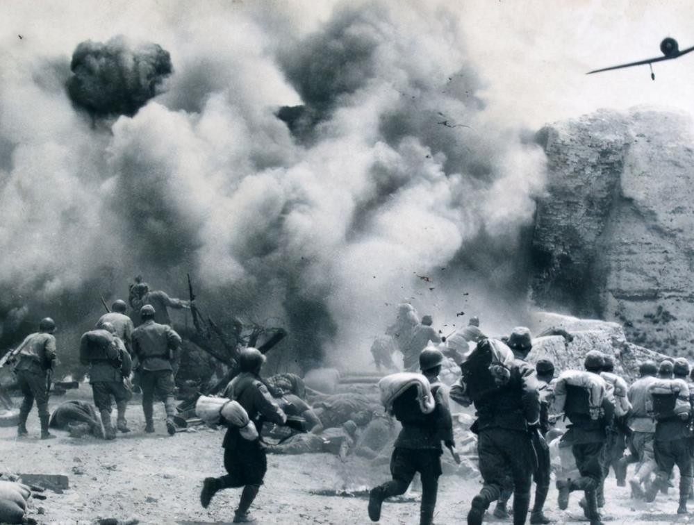 他拿起兜里的手榴弹就向敌军的轰炸机投了过去,不仅如此,他更是不顾个人安危跳出军事掩体,拿起手中的机枪对敌人的轰炸机猛烈射击。
