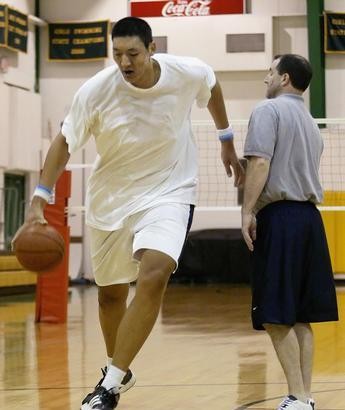 孙明明身高达到2.36米,比姚明还要高10公分。如果说姚明是“东方小巨人”,那么孙明明就是名副其实的“东方巨人”,姚明在孙明明面前,确实低了一头。