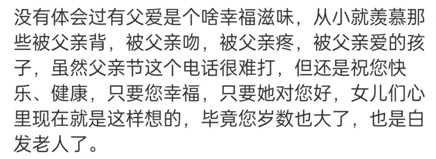 关于父亲,每年父亲节她也会说说,但是话语间好像父亲老早就离开她们并有了新的生活。