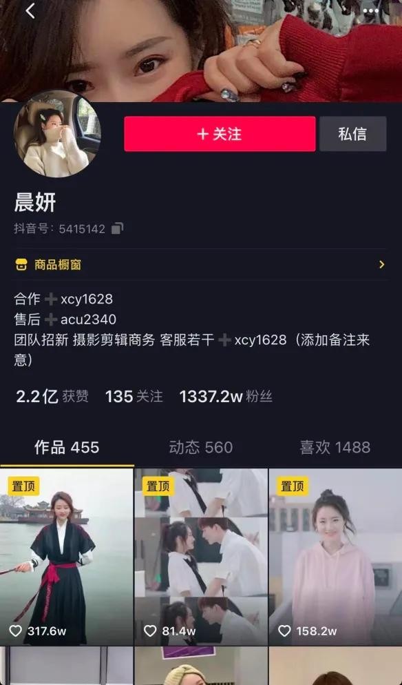终于,晨妍在不断地摸索与尝试中,找到了属于自己的风格。几条古装视频让她在抖音上“一夜爆红”,吸引到一大批喜欢古装的粉丝,在#晨妍的小讨喜 话题下,1.1万个视频共获得34.6亿次播放。