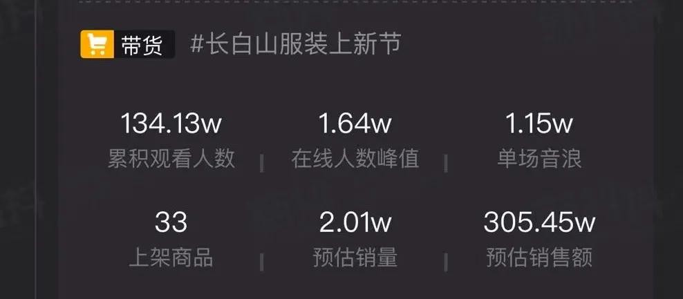据新抖数据显示,11月28日,#长白山服装上新节 期间,晨妍直播间当日预估销售额达305.45万元,预估销量超2万,这个98年的女孩,带货能力不容小觑。