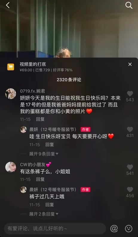 翻看晨妍的短视频作品就能发现,粉丝给她的留言她也经常回复。