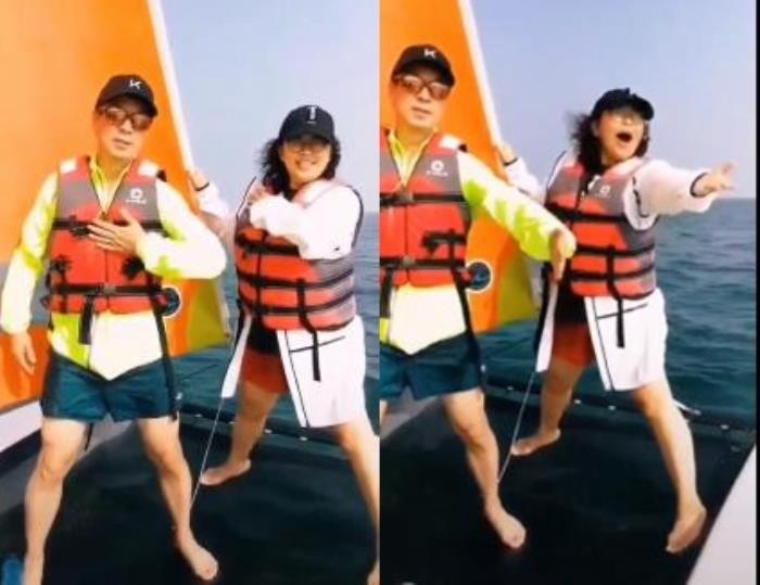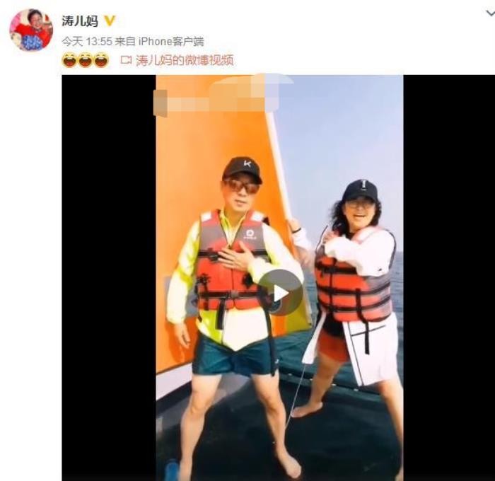 8月3日,涛儿妈还发了一段二人玩帆船的视频,两人对着大海放声歌唱,相当快乐。