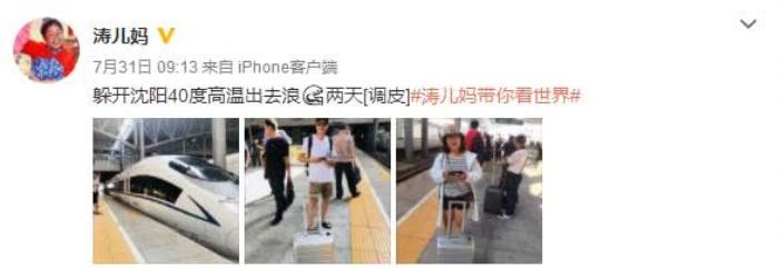 直至近日,海涛爸爸终于肯踏出家门和老婆一起出去旅游了。涛儿妈在微博上晒出一组照片,并配文:“
