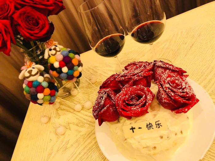 生活需要仪式感,领证纪念日也要准备个蛋糕庆祝一下,下面这个蛋糕很可能是自己做的,因为两人的厨艺都很好。希望佟大为和关悦的感情像玫瑰花一样红红火火,一直甜蜜下去!