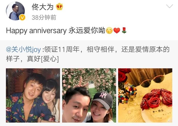 8月20日晚上,关悦分享了他们从青涩到如今的中年照,并且感慨:领证11周年,相守相伴,还是爱情原本的样子,真好!佟大为转发:Happy anniversary,永远爱你哟!真是喂的一手好狗粮!