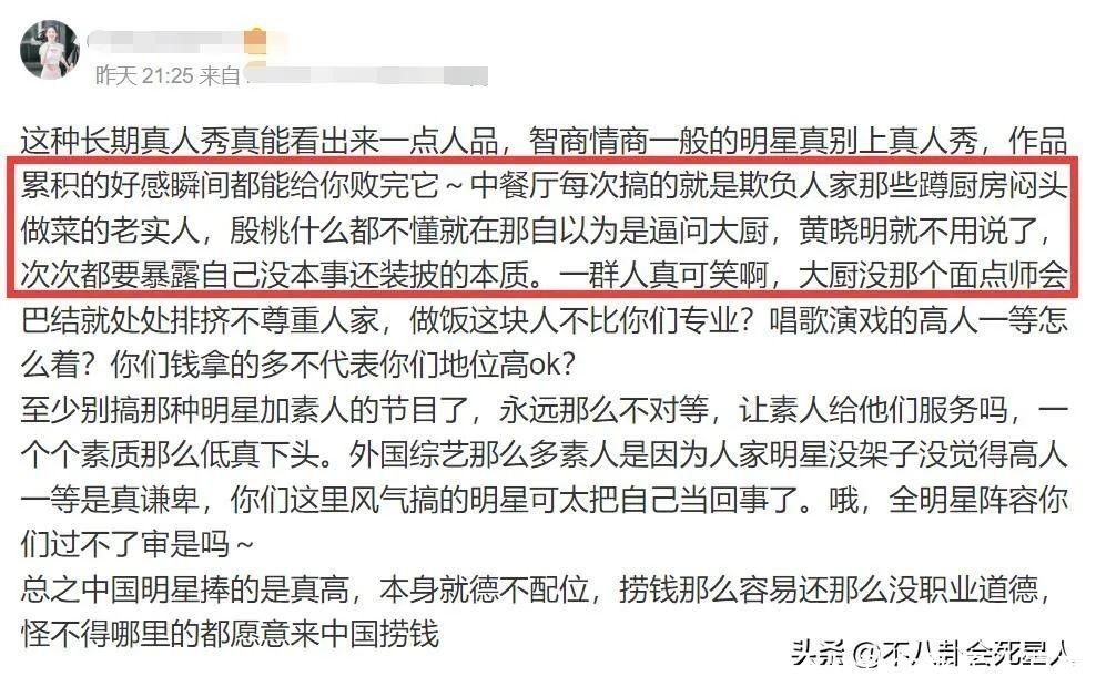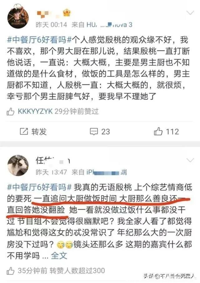 还有网友觉得殷桃什么都不懂,就在逼问大厨,这和黄晓明一样都很败好感。