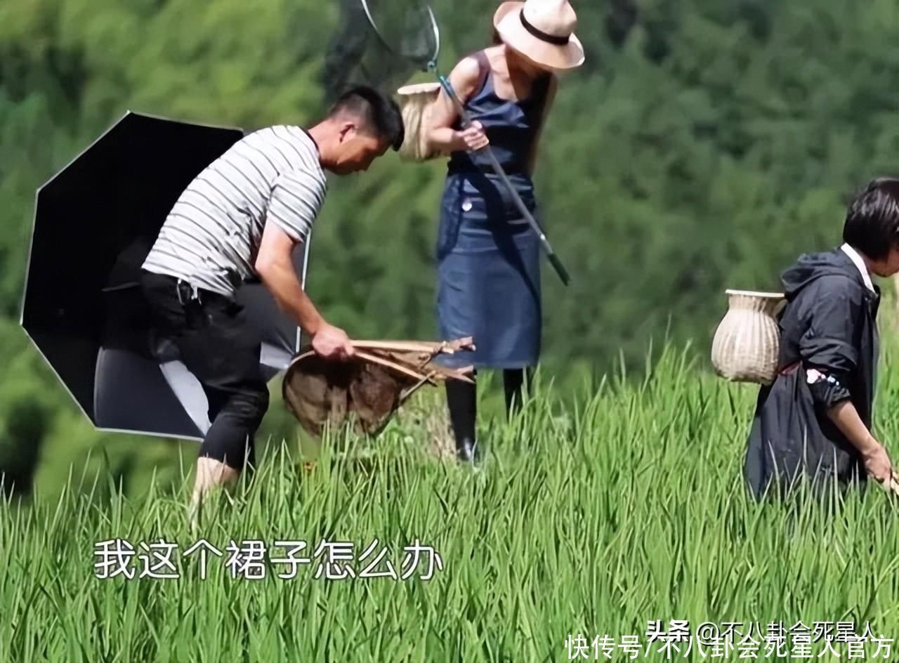 也因为她的这番穿着打扮,被吐槽说一看就是第一次去干活,哪里有穿紧身裙去抓鱼的,不仅碍事还让人挺无语的。
