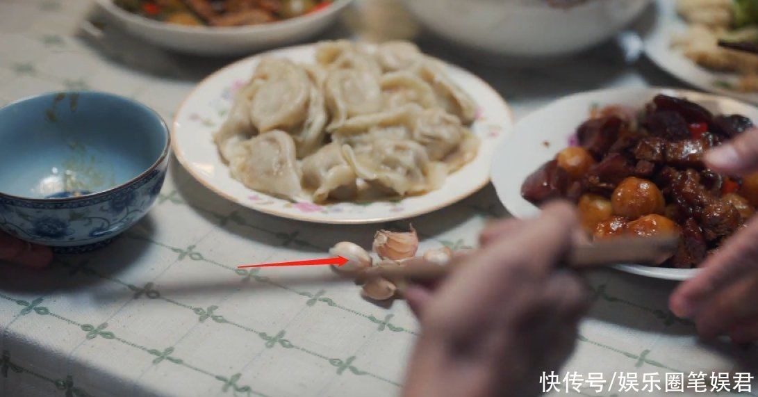 到了晚饭时间,那不得吃点硬菜?中国人不管什么时候都离不开饺子,还必须得配一把大蒜才够味儿,隔着屏幕都能感受到这部剧浓浓的烟火气。