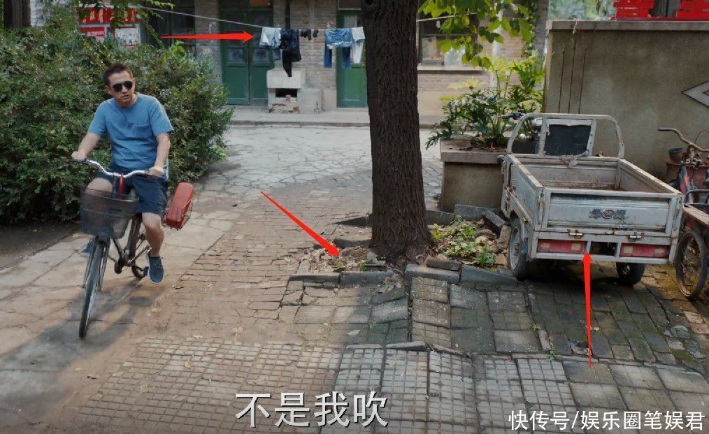 晾衣绳上挂着未干的衣服,路边还停着废旧的三轮车,根本就没有刻意搭设的痕迹,仿佛就是生活里的某一个场景。