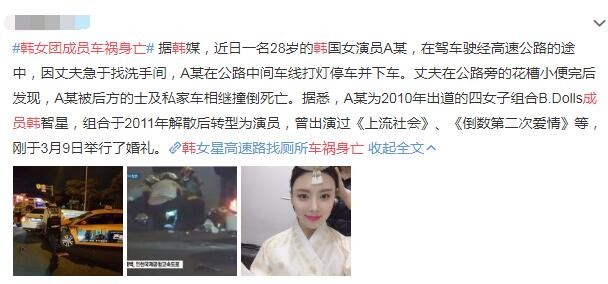 韩女团成员车祸身亡怎么回事高速违规下车被撞失去生命