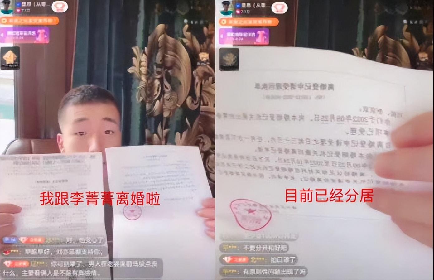 可以说,婚后两人也是经历了风风雨雨,感情应该更加深厚才是,但是不知道他们之间到底经历了什么,8月26日,刘振在直播时自曝已经与李菁菁签字离婚,目前已分居,处于离婚冷静期。