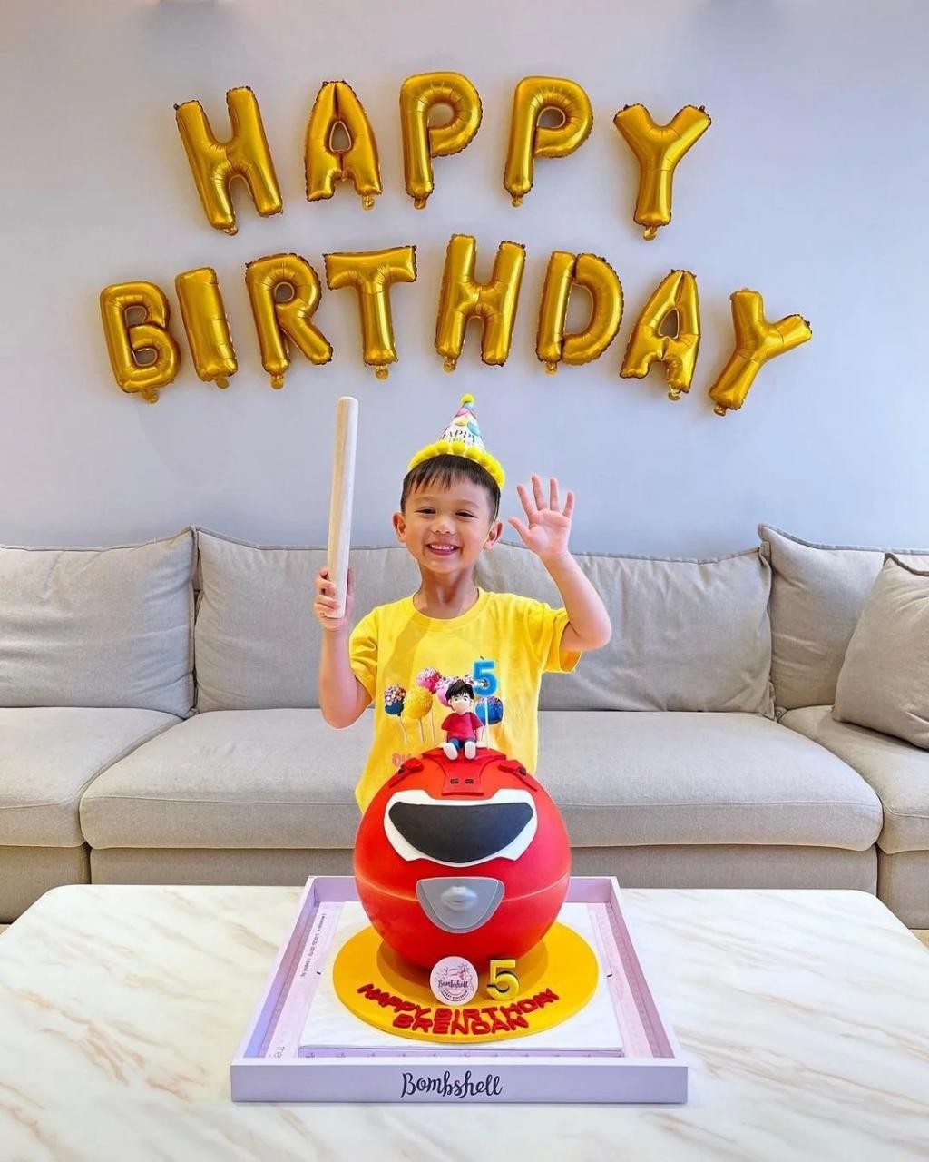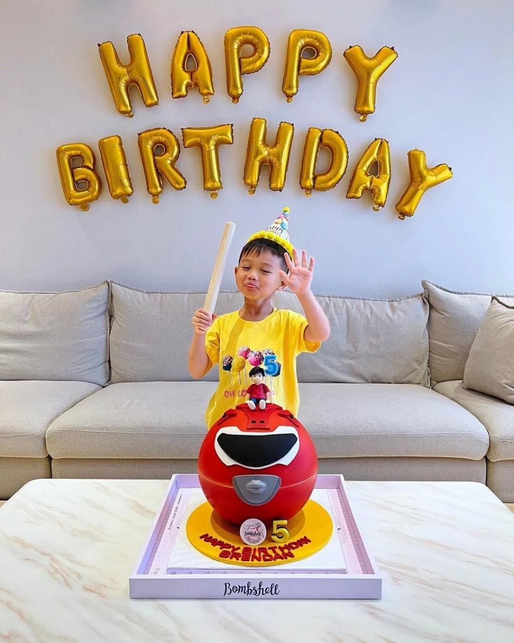 而最近原来就是大儿子的 5 岁生日,他们夫妻俩在家为儿子举办了生日派对。他们夫妻俩送给了儿子一个很好看的生日蛋糕,虽然这个生日场景就布置得不算很隆重,但是一家人在一起度过就很开心。小寿星穿着黄色衣服,然后特意伸出手掌,从脸上的笑容就知道生日当天他很开心。