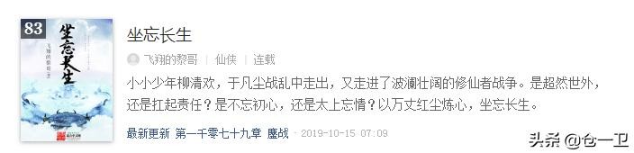 第六章,坐忘长生经。仙人打架,一起挂掉,主角渔翁得利,偶然发现一页纸,居然和柳老头临时之前交付主角的经书内容一致。主角匆匆阅读,立刻遁走,寻找落脚之处。